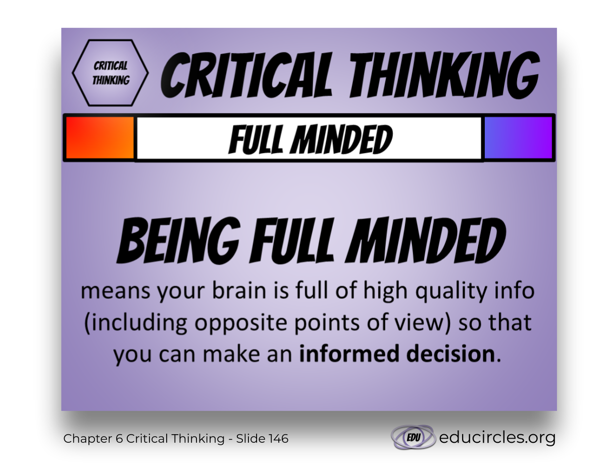 Being full minded means you have to look at both sides of the story