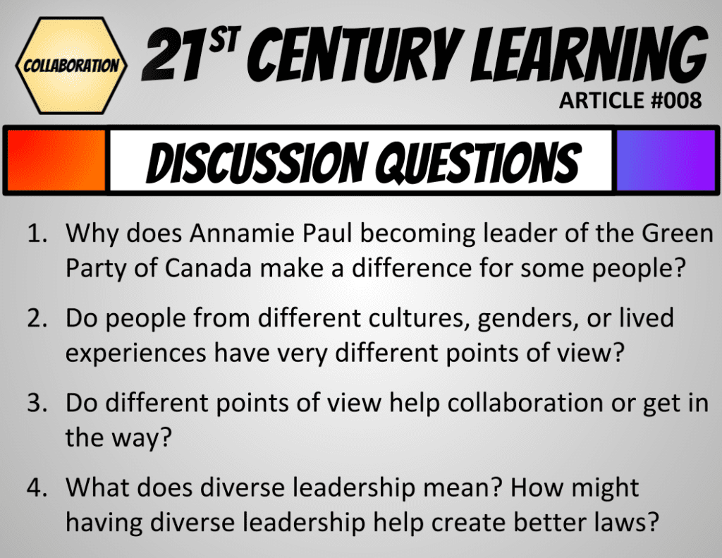 - The new leader of the Green Party also says having diverse leadership is “a huge win for people in Canada every time that it happens” Do you think it is a huge win, a minor win, or not really a win at all? Why do you think that?