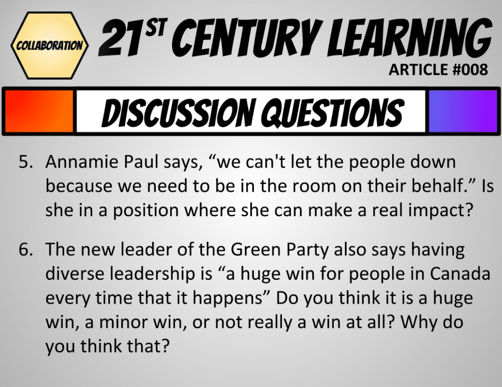 First Black leader of a Federal Party in Canada: COLLABORATION lesson (Reading Response Article 008)