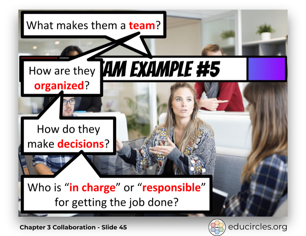 - What makes this group of people a team? How did these people happen to be together at this moment of time? Do they have a shared goal or common objective?